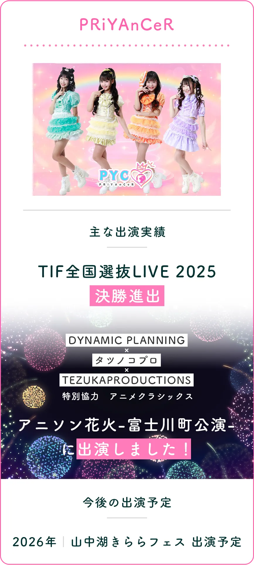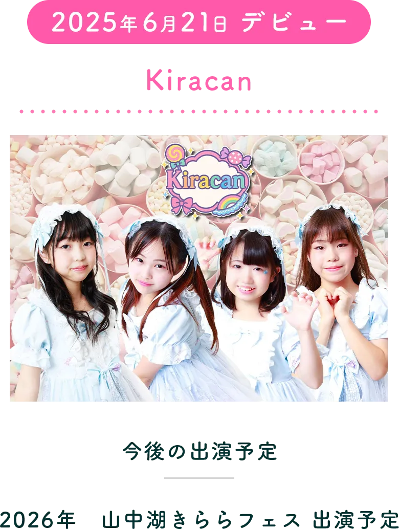 小中学生を中心としたキッズアイドルから大人のアイドルまで、多彩な才能と個性豊かな人材が集まっています。